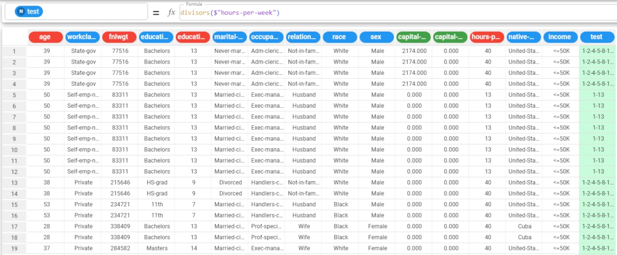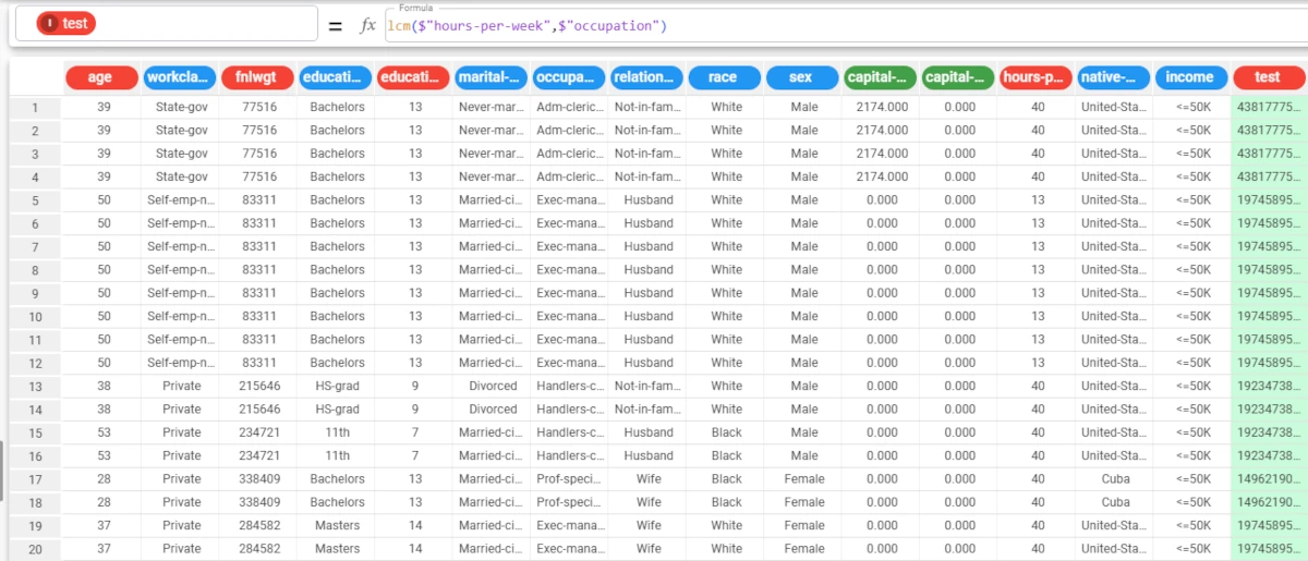 cosh($"Revenue")As you can see, the attribute has been filled with the hyperbolic cosine of the Revenue attribute’s values.