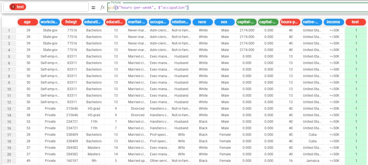 In this example, we want to add a column which contains the round of the writing score attribute’s values.